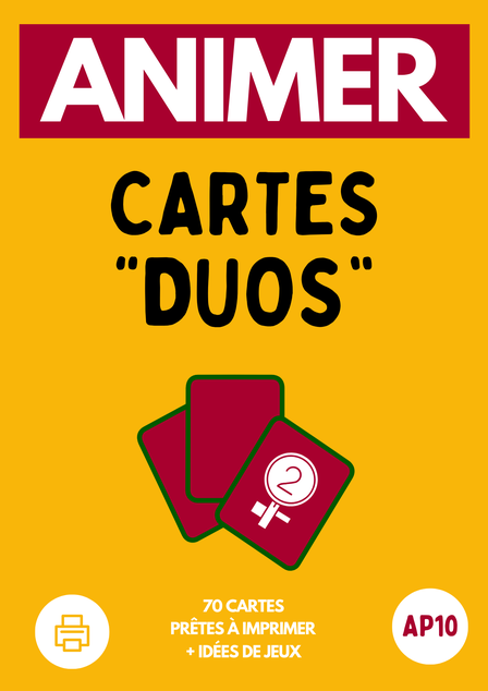 Les cartes “Duos” AP10 sont justement pensées pour ça : un PDF prêt à imprimer, 70 cartes autour de 35 duos célèbres (cinéma, BD, dessins animés…) et une série d’idées de jeux intégrées.